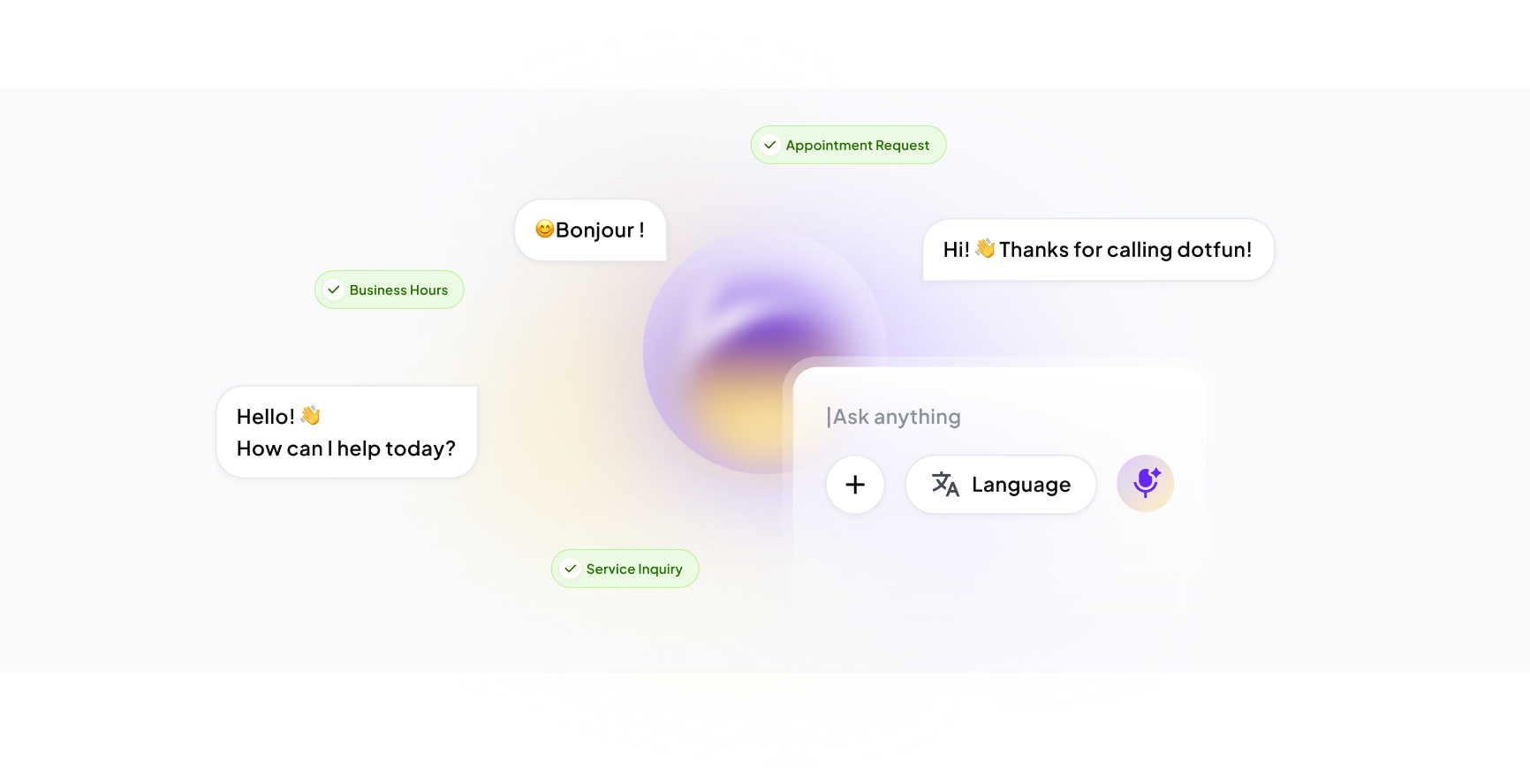 Using AI, Iris understands the caller’s requests. It can answer common questions (hours, services, basic troubleshooting), provide information, or take messages. Iris ensures customers feel valued by providing attentive and personalized service throughout the call. Iris is highly trained to handle inquiries across different industries, ensuring expert support and seamless assistance.